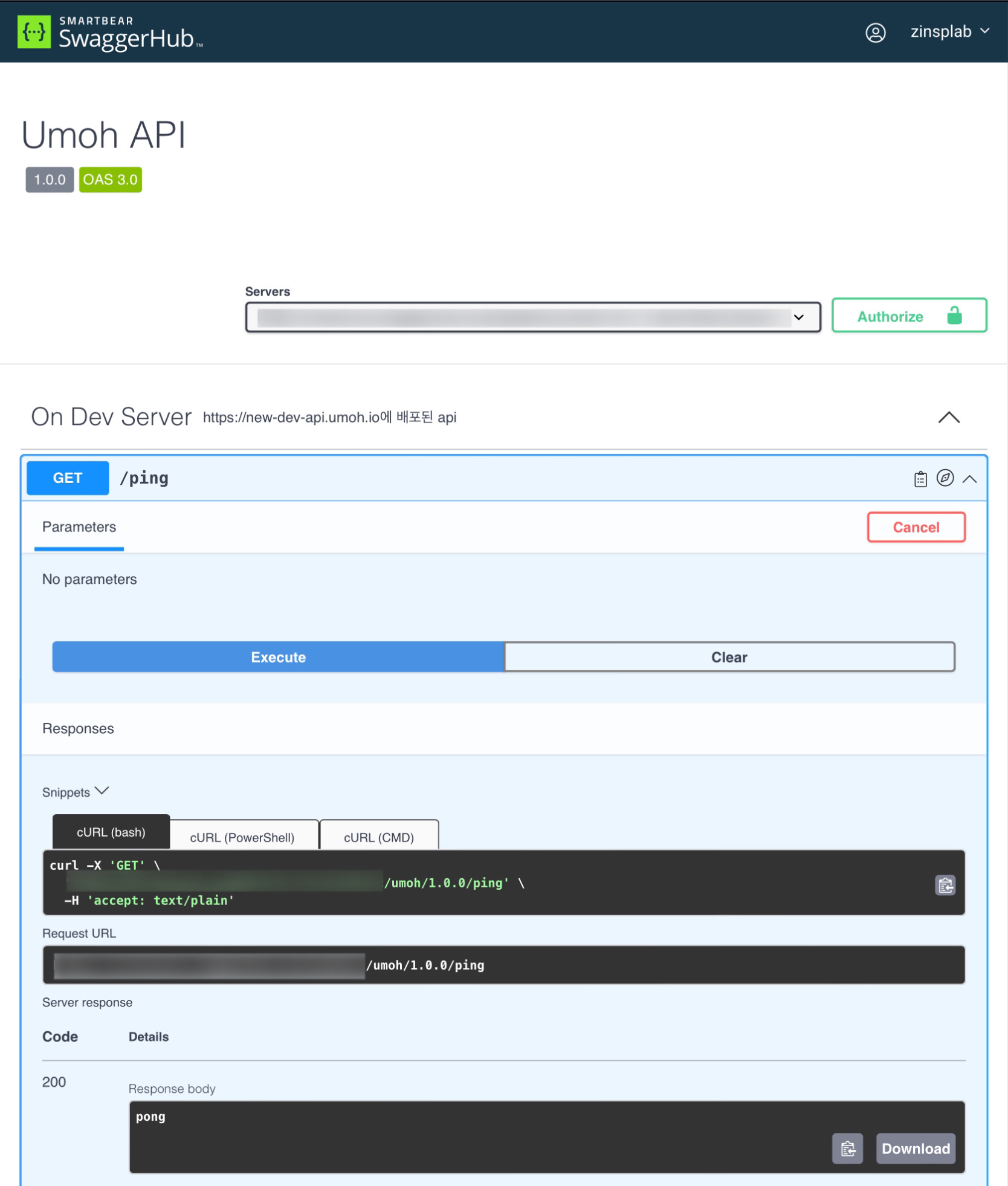 발행된 문서 안에서 해당 Mock Server 주소로 Try it out도 가능하다.