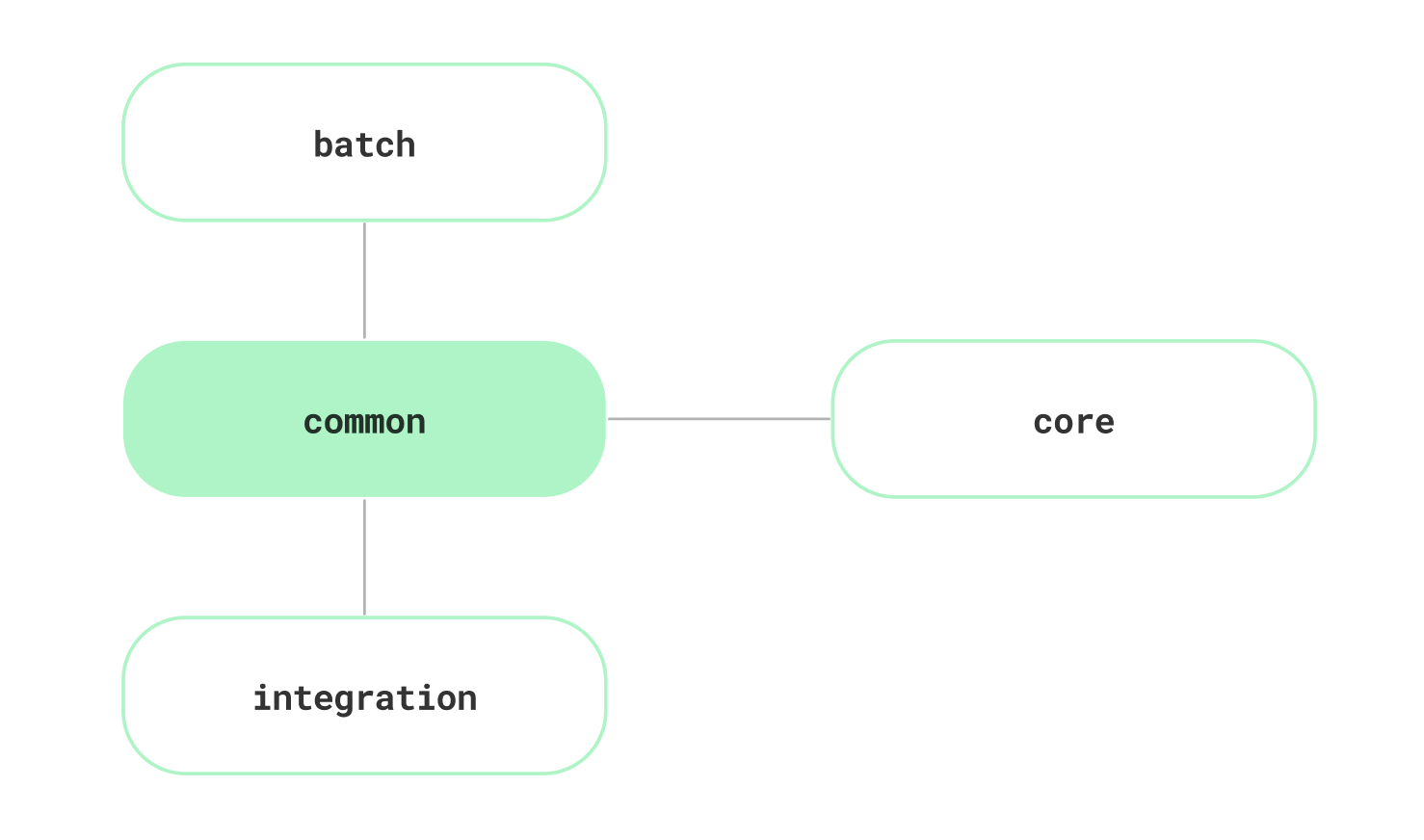 현재 우모(Umoh)의 모듈 구조를 간단하게 표현하면 비즈니스 도메인을 담은 common 모듈을 중심으로, batch/integration/core* 모듈이 있다. 그렇기 때문에 common 모듈은 integration 모듈을 알지 못한다. 그리고 integration에서 EmailSender가 구현되어 있다.